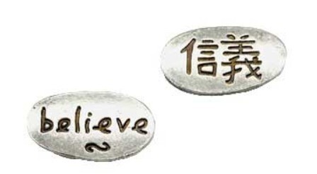 Double sided aluminum Believe charm. Keep this in your pocket or close by as a reminder to believe in yourself or your intention. 1" wide and sold individually