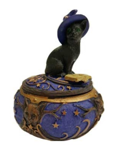 Magical Cat Box Excluding Tax: $2.40 $31.95 Add To Cart Buy Now Call Us WhatsApp Description This magical little jar displays a black cat, sitting atop its lid seemingly looking up from reading a magical tome; a wonderful place for storing your jewelry and magical tools. 5” Delivery Orders are packed and shipped same day if the order is placed before 3:00p.m. Central Standard Time. All orders are shipped via standard delivery. If you require expedited delivery, please contact us.