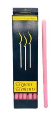 Set of 6 pink extra long chime/taper candles. These elegant element candles are sure to make a statement along with extra burn life. 10" and fits 1/2" holders.