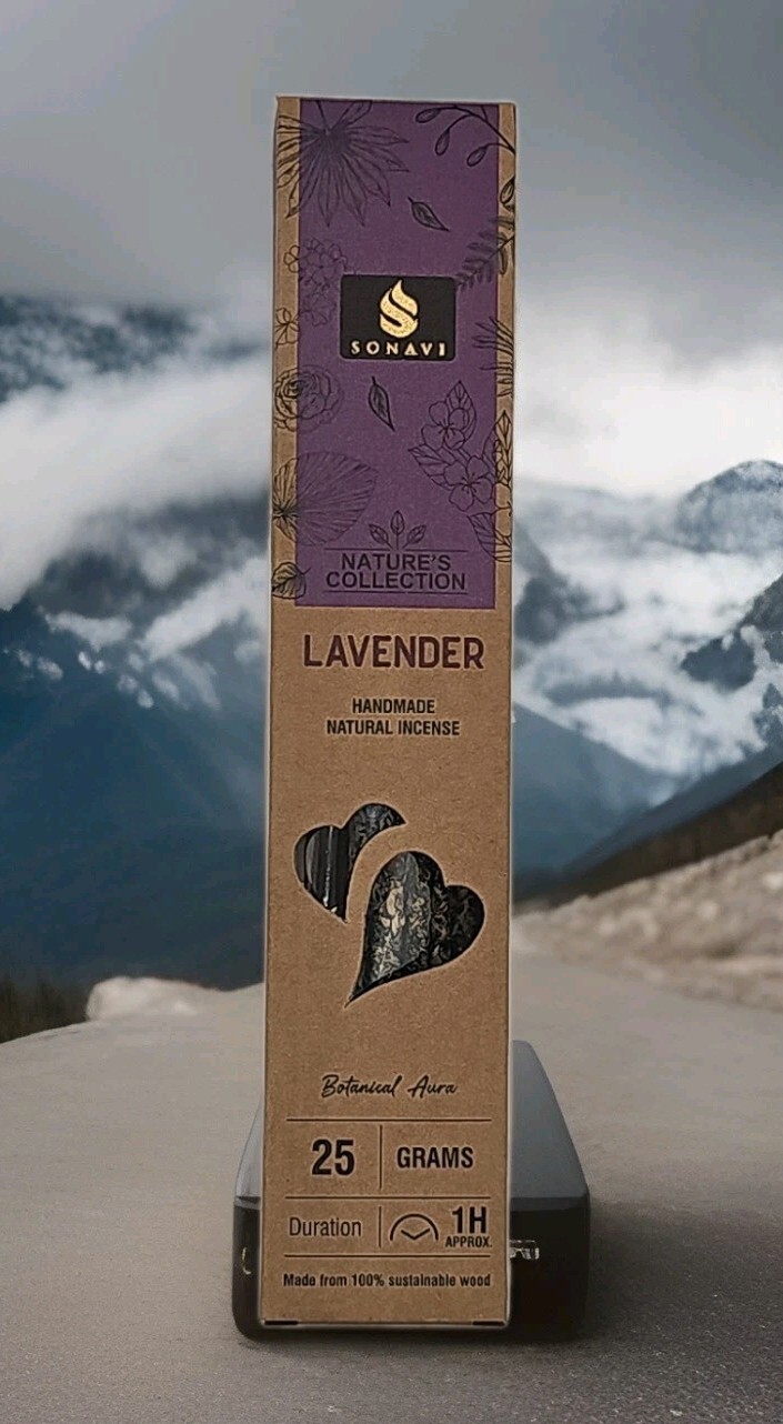 1 Box of Sonavi Premium Handcrafted Lavender Incense Sticks. 25gm per box.