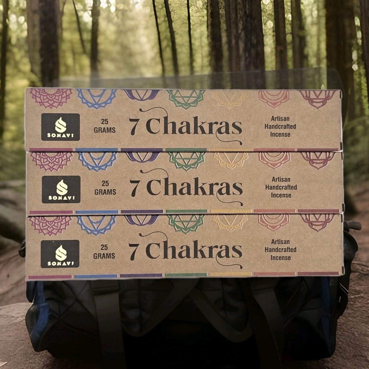 3 Boxes of Sonavi Premium Handcrafted 7 Chakra Incense Sticks. 25gm per box.
