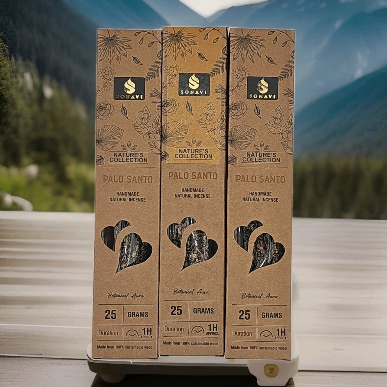 3 Boxes of Sonavi Premium Handcrafted Palo Santo Incense Sticks. 25gm per box.