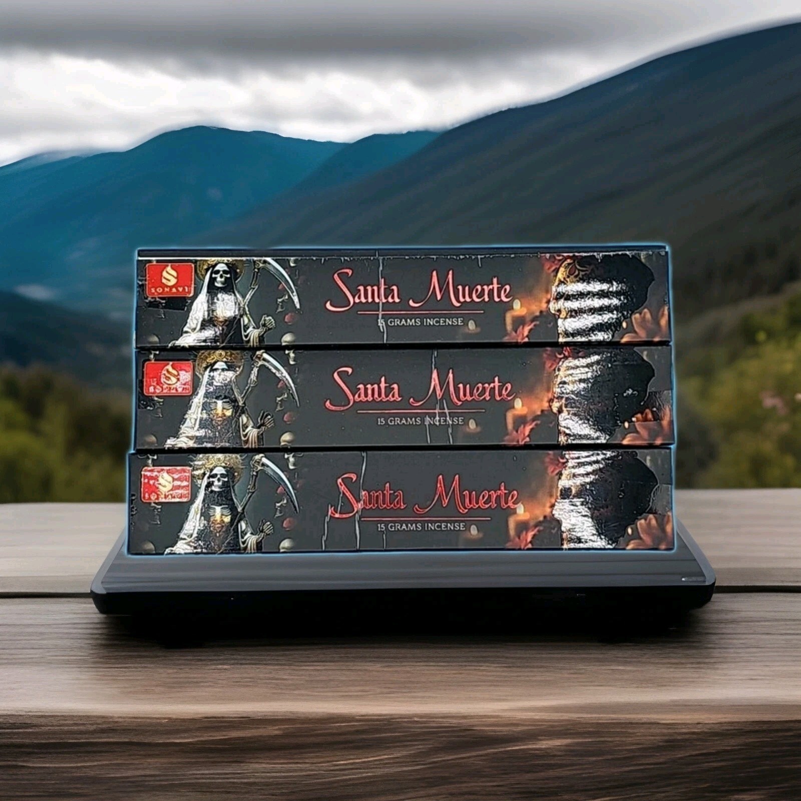 3 BOXES OF SONAVI SANTA MUERTE HANDCRAFTED INCENSE, 25 GRAMS PER BOX
