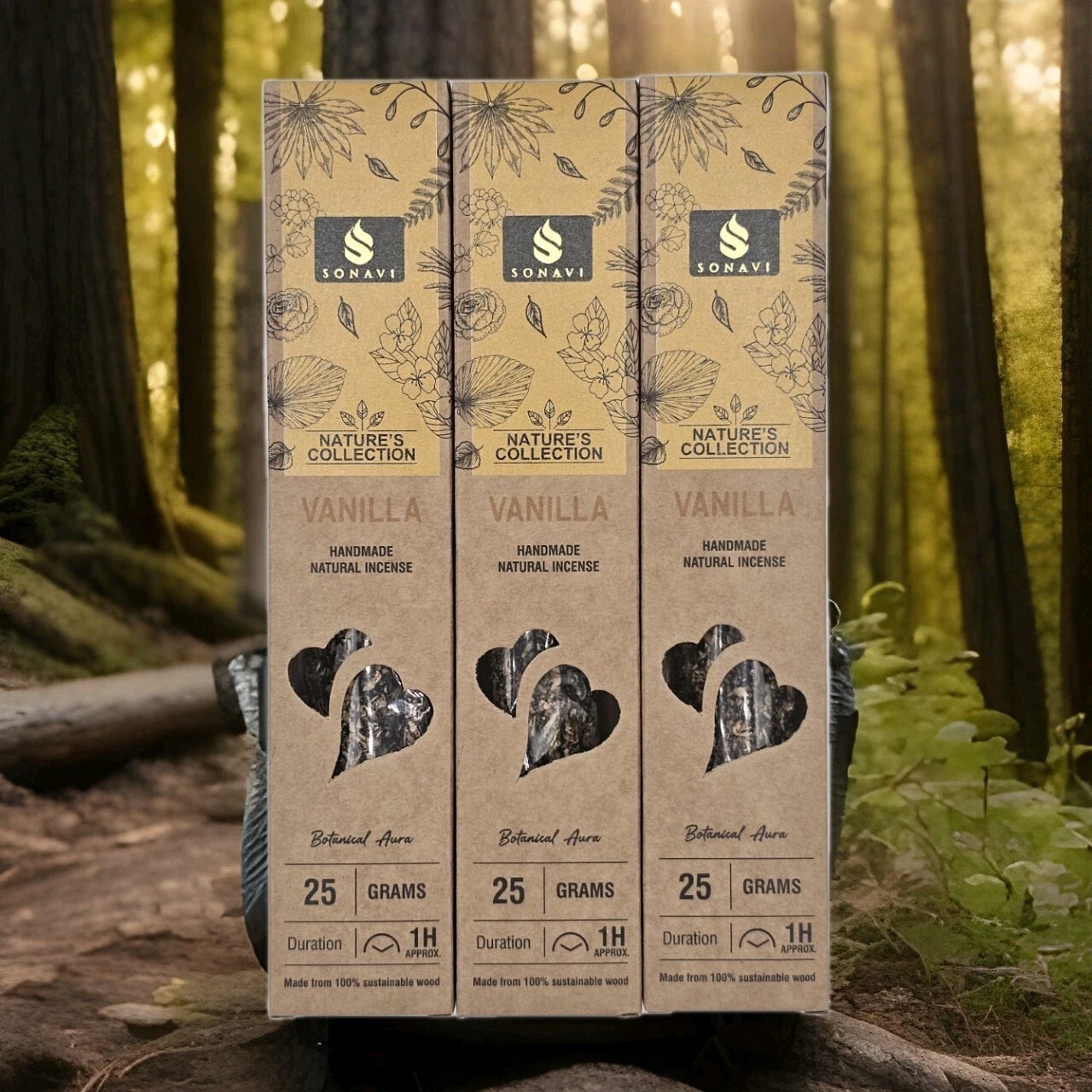 3 Boxes of Sonavi Premium Handcrafted Vanilla Incense Sticks. 25gm per box.