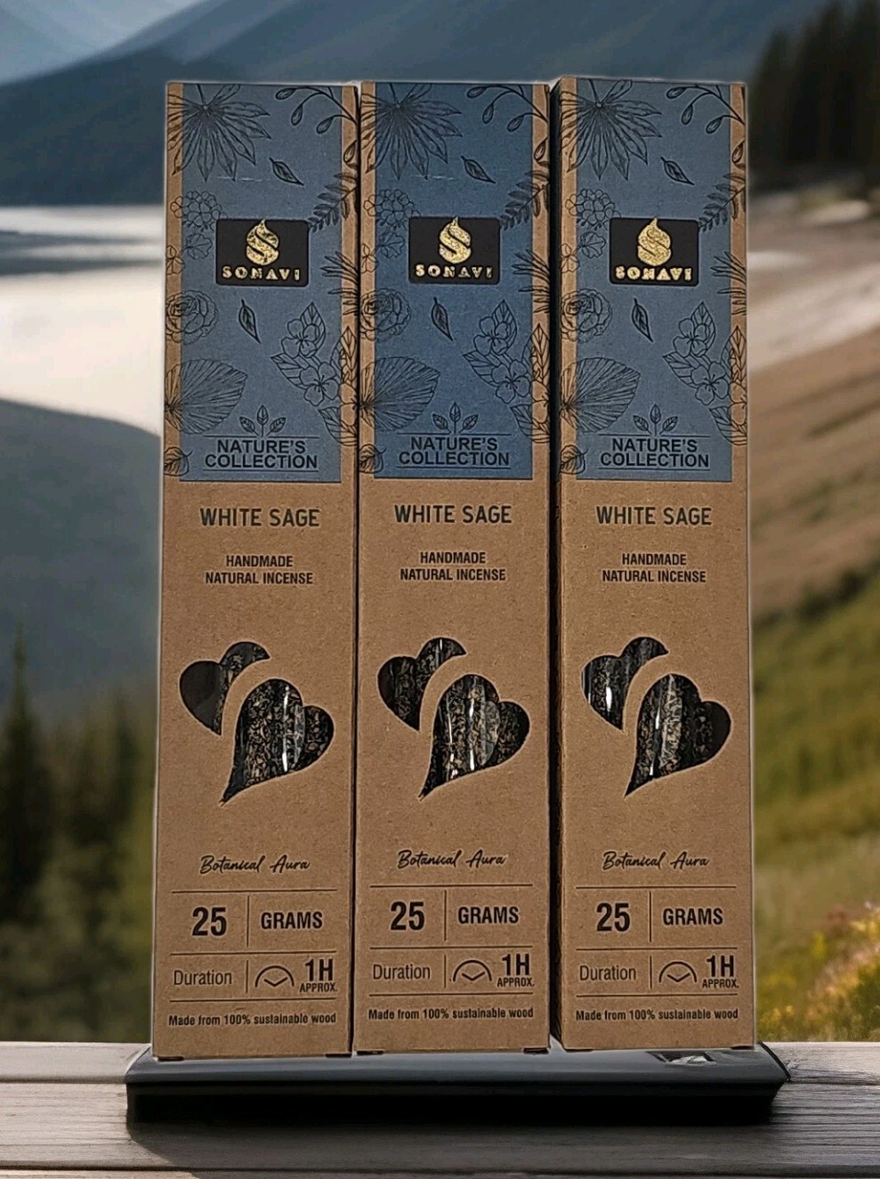 3 Boxes of Sonavi Premium Handcrafted White Sage Incense Sticks. 25gm per box.