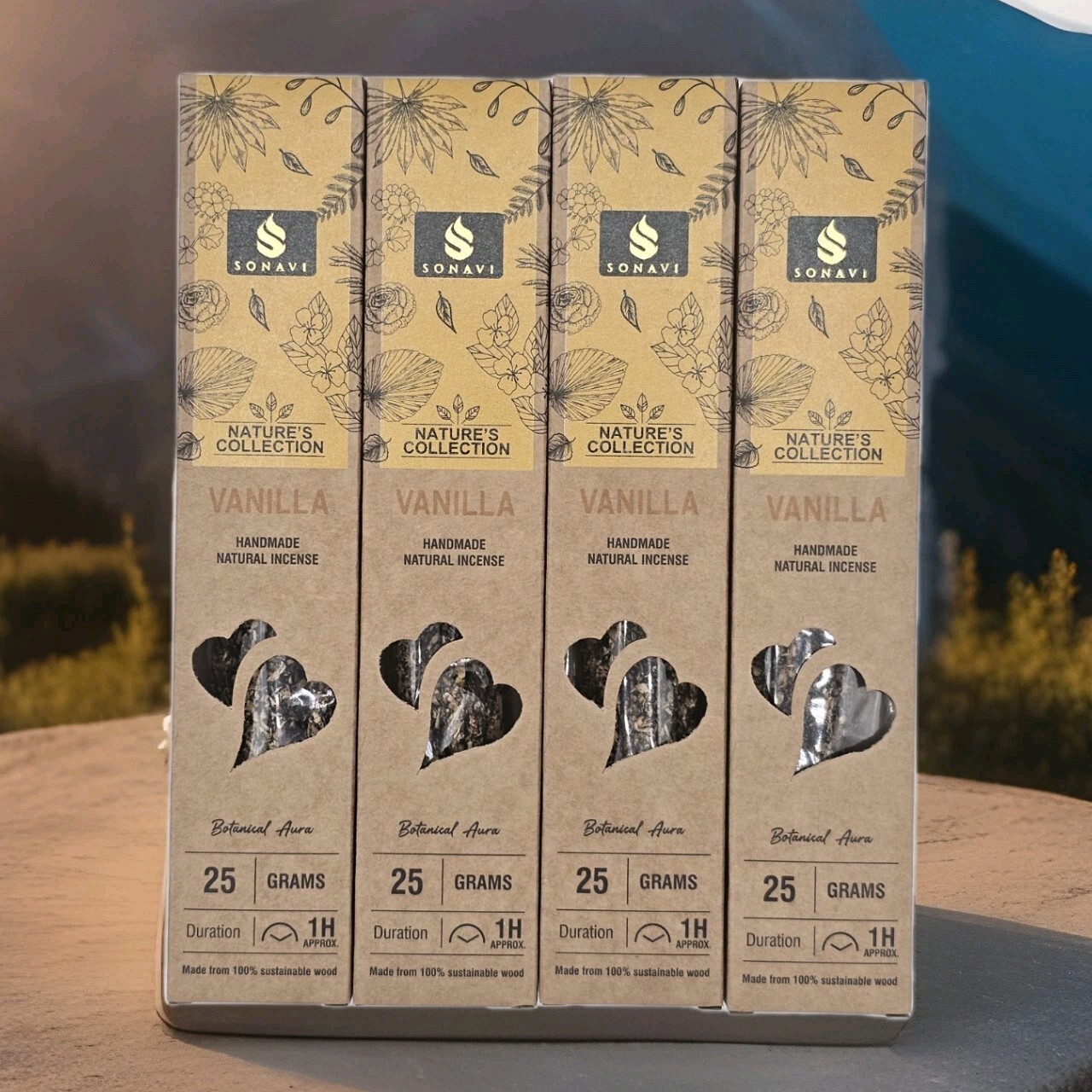 4 Boxes of Sonavi Premium Handcrafted Vanilla Incense Sticks. 25gm per box.