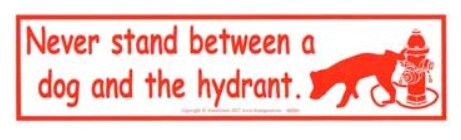 Never Stand Between a Dog and the Hydrant bumper sticker